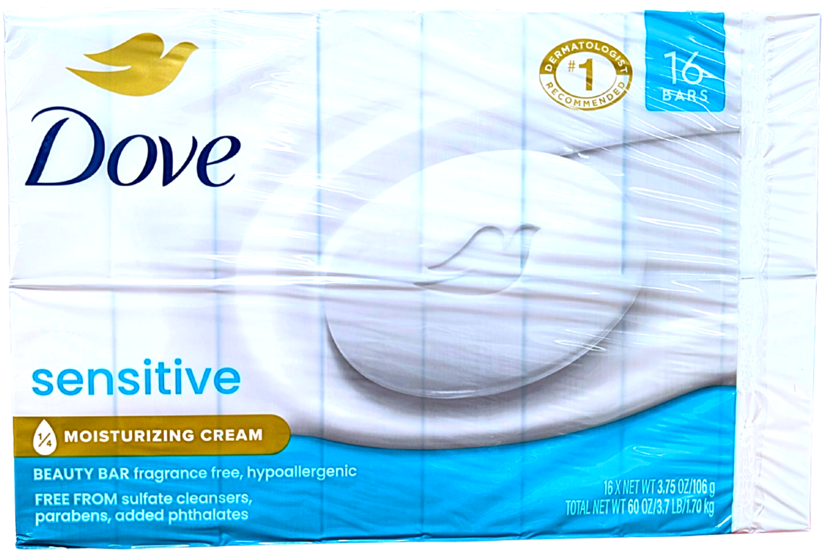 Dove Beauty Bar Soap Sensitive Skin Moisturizing Cream 16 x 3.75 Oz