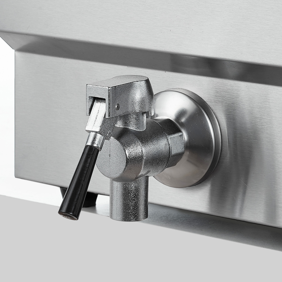 Clean with Ease: Luckily, its heating tube can be easily flipped up, which facilitates an easier cleaning after every use. And guess what? The stainless steel exterior makes it easy to wipe down. Also, the tank comes with a front-mounted drain valve for effortless oil release. Note: 1. Please PEEL OFF any white plastic protective film on the surface. 2. Always make sure the machine is cleaning cool and dry before string.