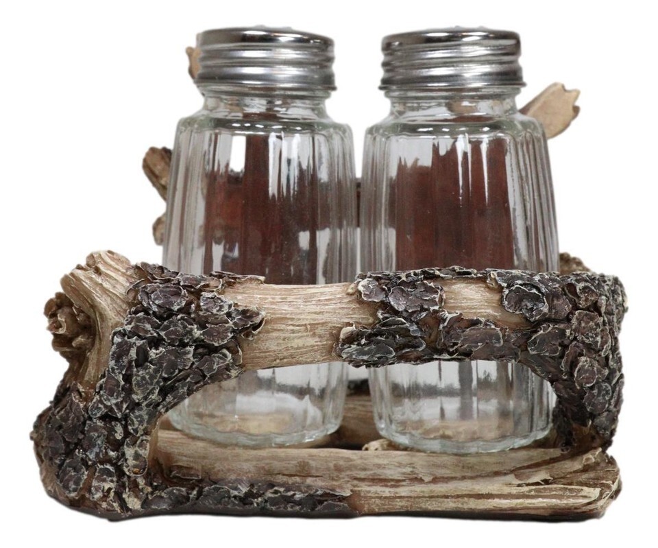Rustic Forest 2 Elk Moose Dangling On Tree Branch Salt And Pepper Shakers Holder