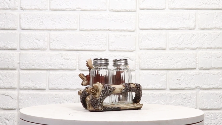 ? Introducing our whimsical Two Moose Dangling on Tree Branch Salt and Pepper Shakers Holder, a delightful blend of functionality and woodland charm for your dining table. Crafted with meticulous attention to detail, this unique holder features two adorable moose suspended from a tree branch. Not only does it provide a practical and stylish way to season your dishes with salt and pepper, but it also adds a touch of rustic allure to your table setting.