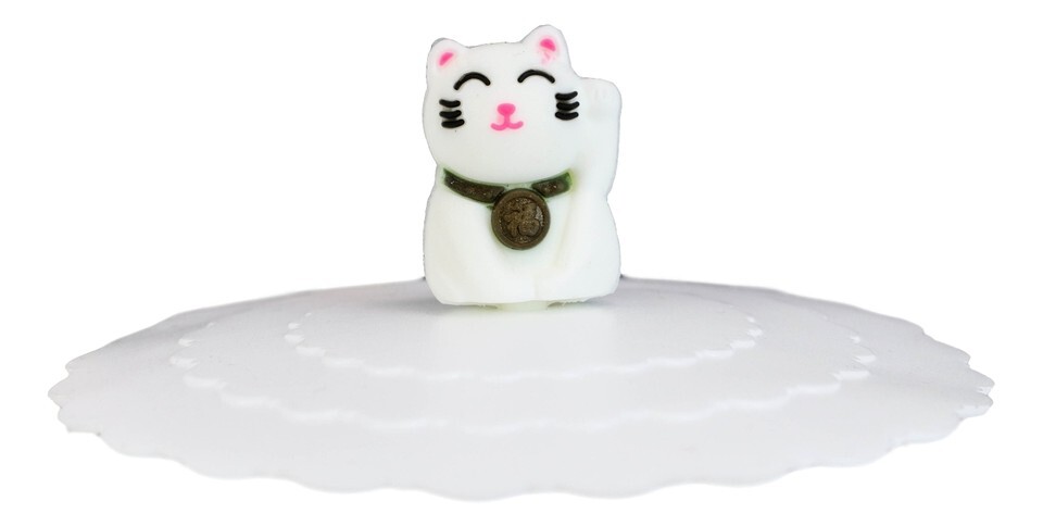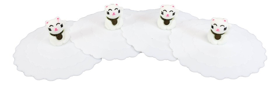 Set Of 4 White Maneki Neko Cat Reusable Silicone Coffee Tea Mug Cup Cover Lids