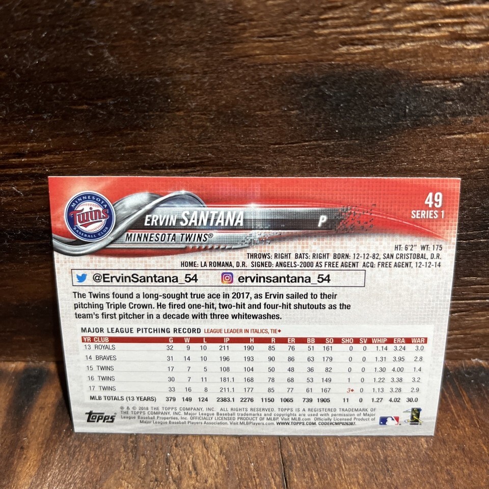 2018 Topps #49 Ervin Santana Minnesota Twins and 50 similar items