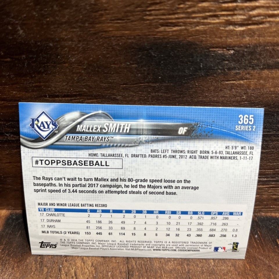 2018 Topps Mallex Smith Tampa Bay Rays #365 |