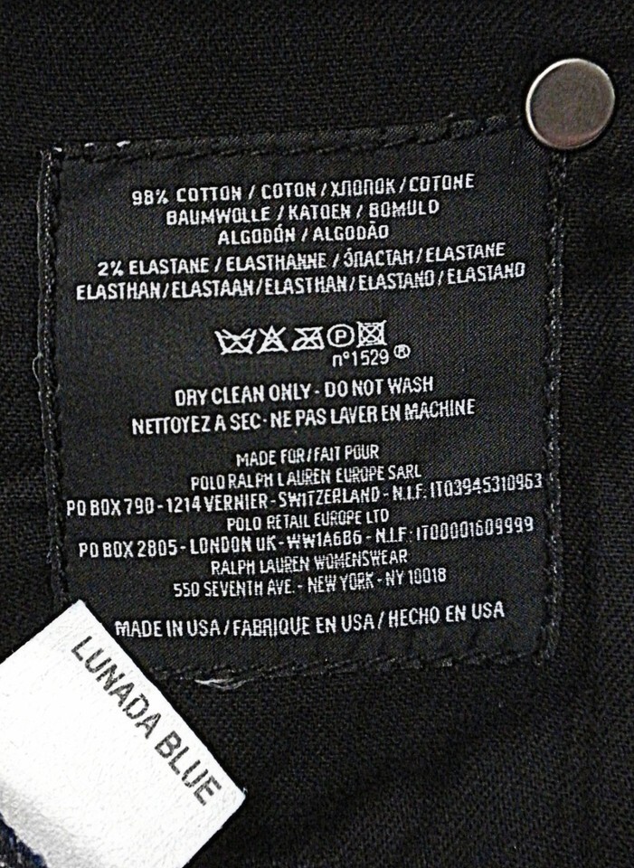 Ralph Lauren Black Label 888 Matchstick Women Navy Jeans USA Size 31/34 12 NWT