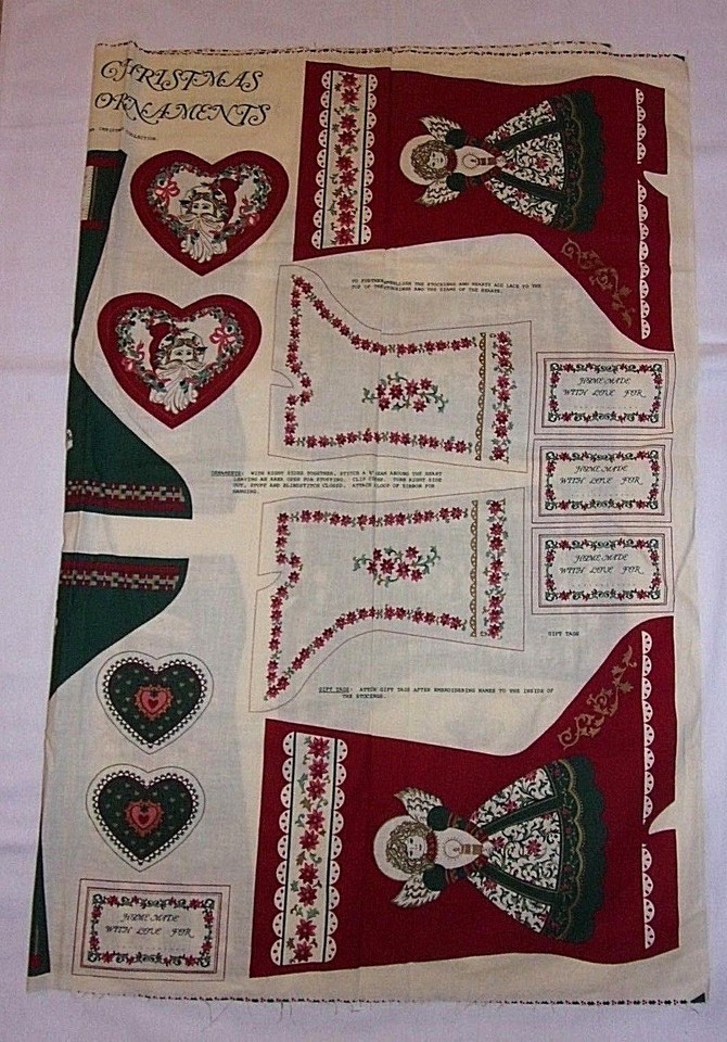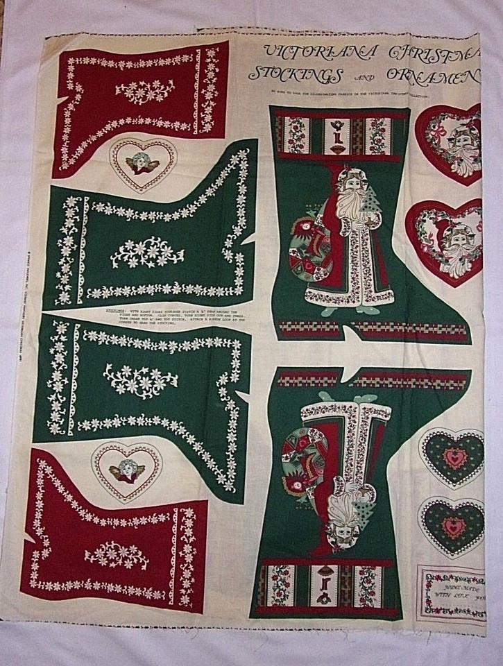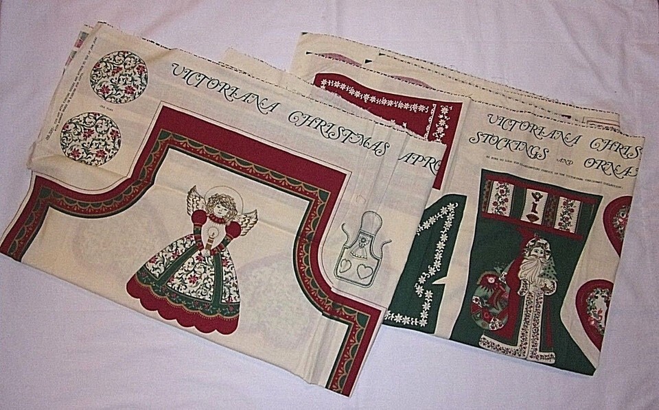 Fabric Panels Victoriana Christmas Crafts Vtg Apron Stockings Ornaments Hot Pads