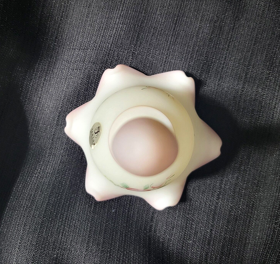 Fenton Rose Garden Burmese Satin Glass Pink Ruffled Edge Hand Painted by Johnson