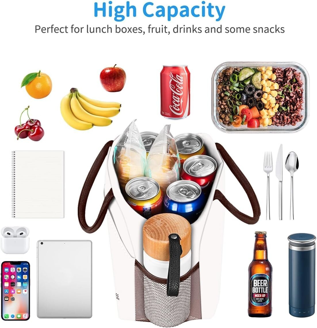 This versatile lunch bag functions as a reusable lunch bag, grocery bag, or shopping bag. Perfect for the office, travel, work, picnics, beach outings, hiking, and fishing. It also makes a thoughtful present for friends and family