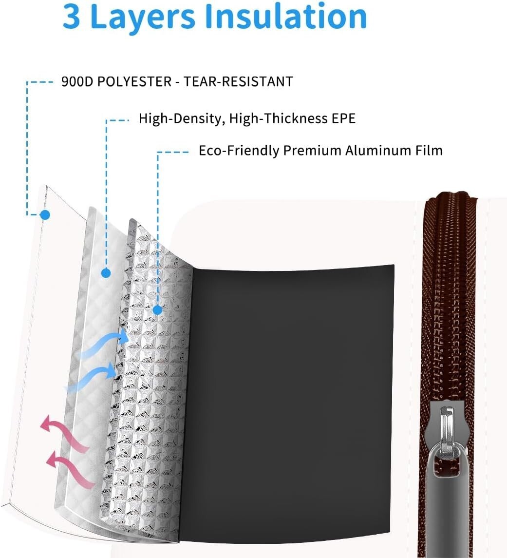 Crafted from premium frosted oxford cloth, this cooler bag features precision stitching, leak-proof design, and thickened anti-collision layers. It?s splash-resistant, easy to clean, and provides long-lasting insulation. Upgraded, thickened handles and reinforced metal zippers ensure maximum durability