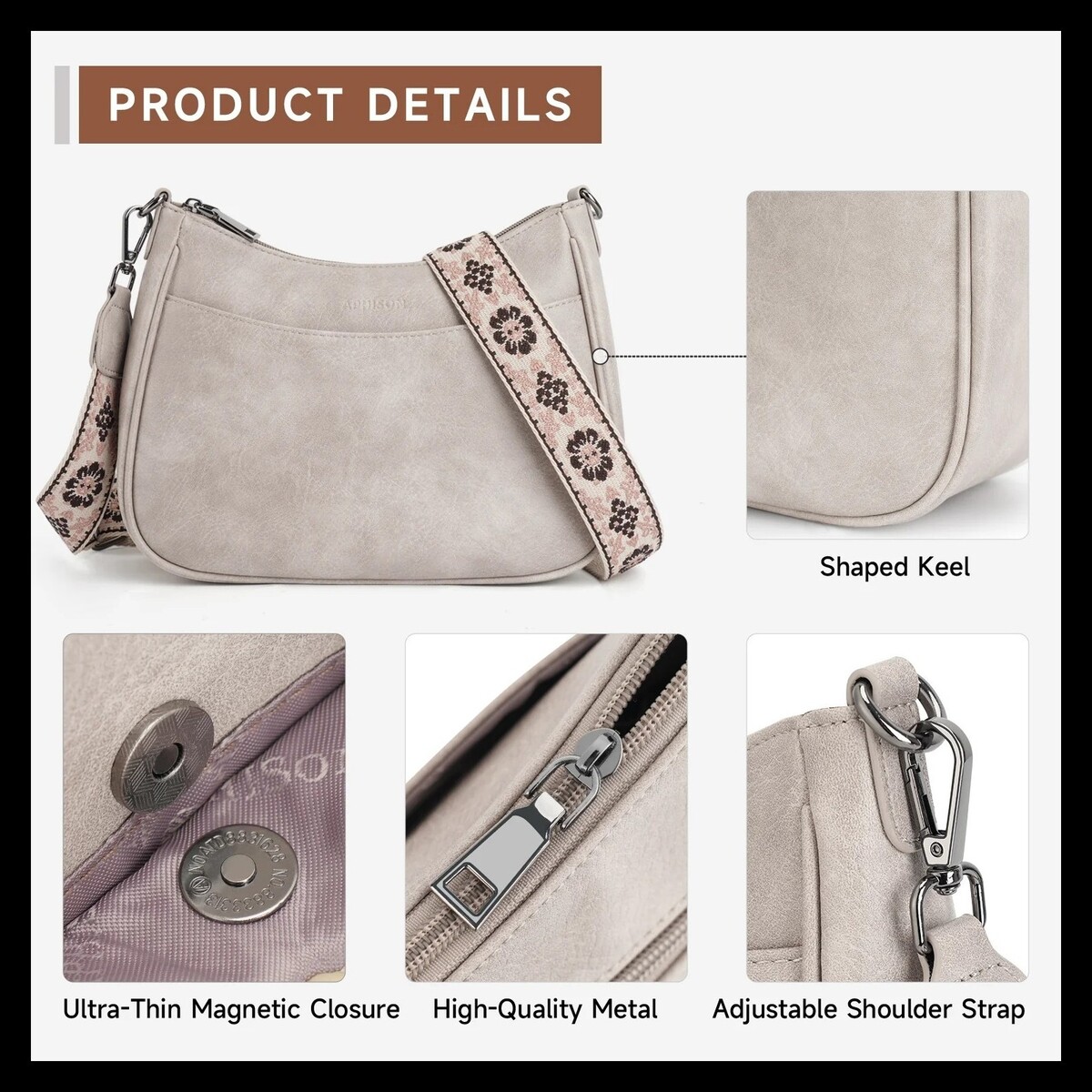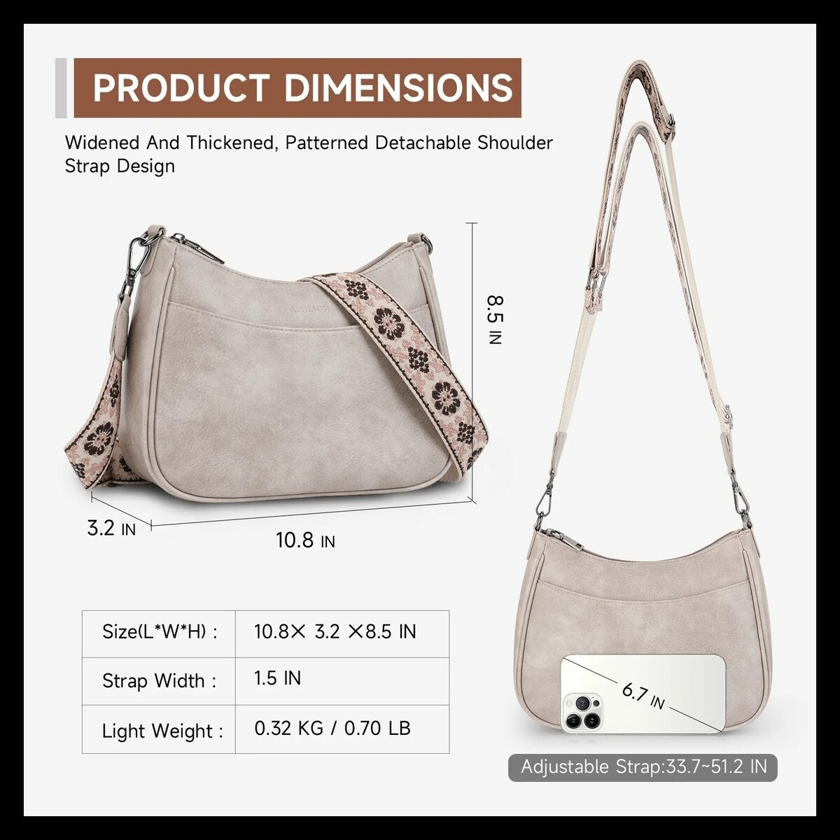 ** Shoulder/Crossbody Strap is detachable with Beautiful Embroidered Colors of Browns Tans