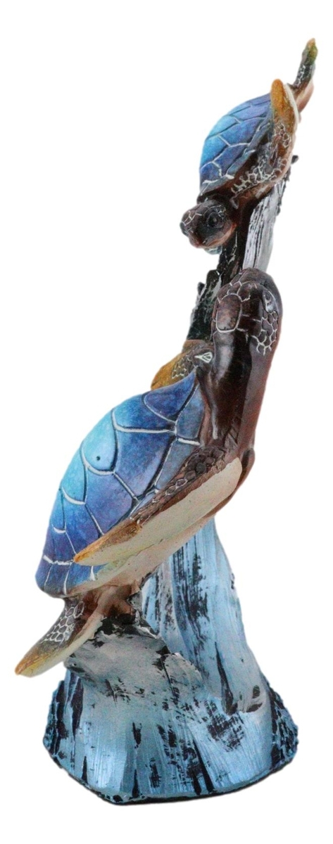 Ebros Nautical Blue Sea Turtle And Baby Swimming By Ocean Currents And Waves Figurine