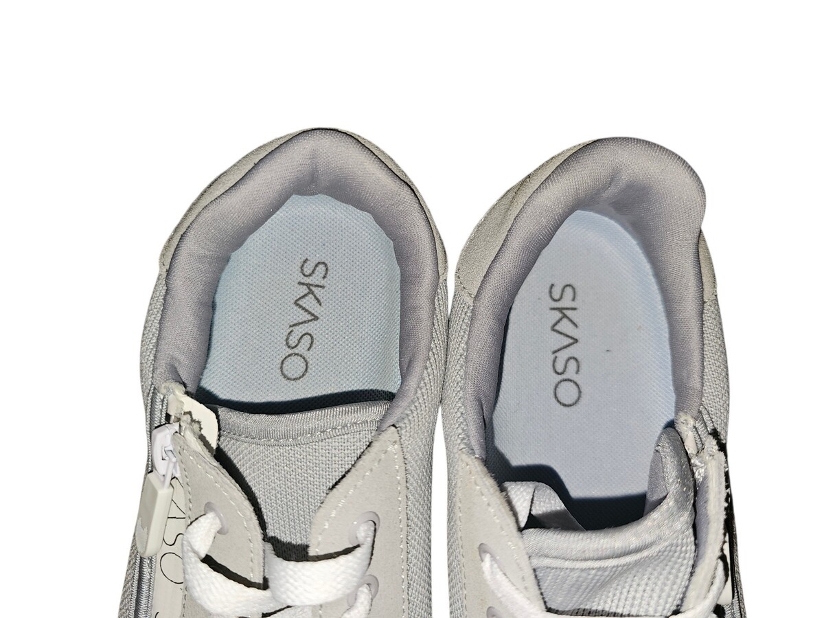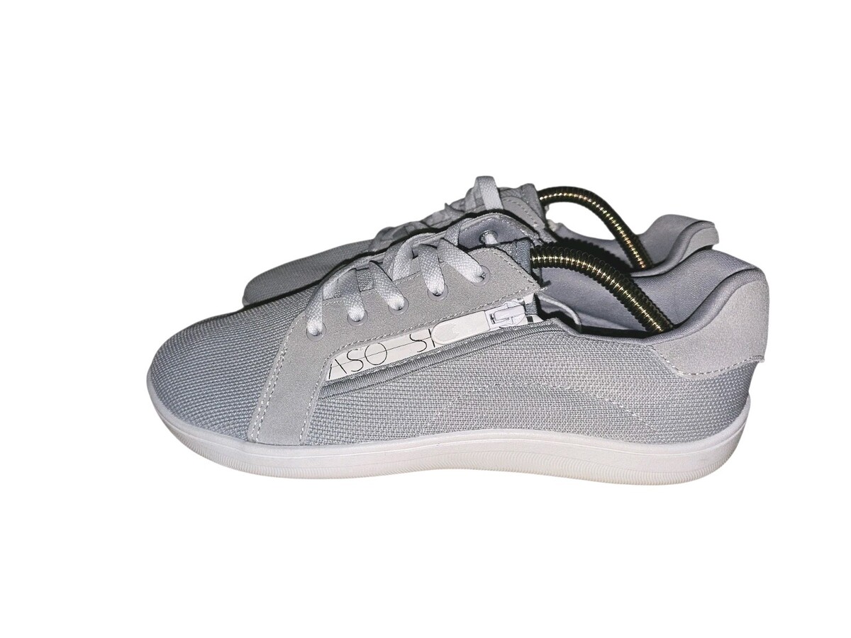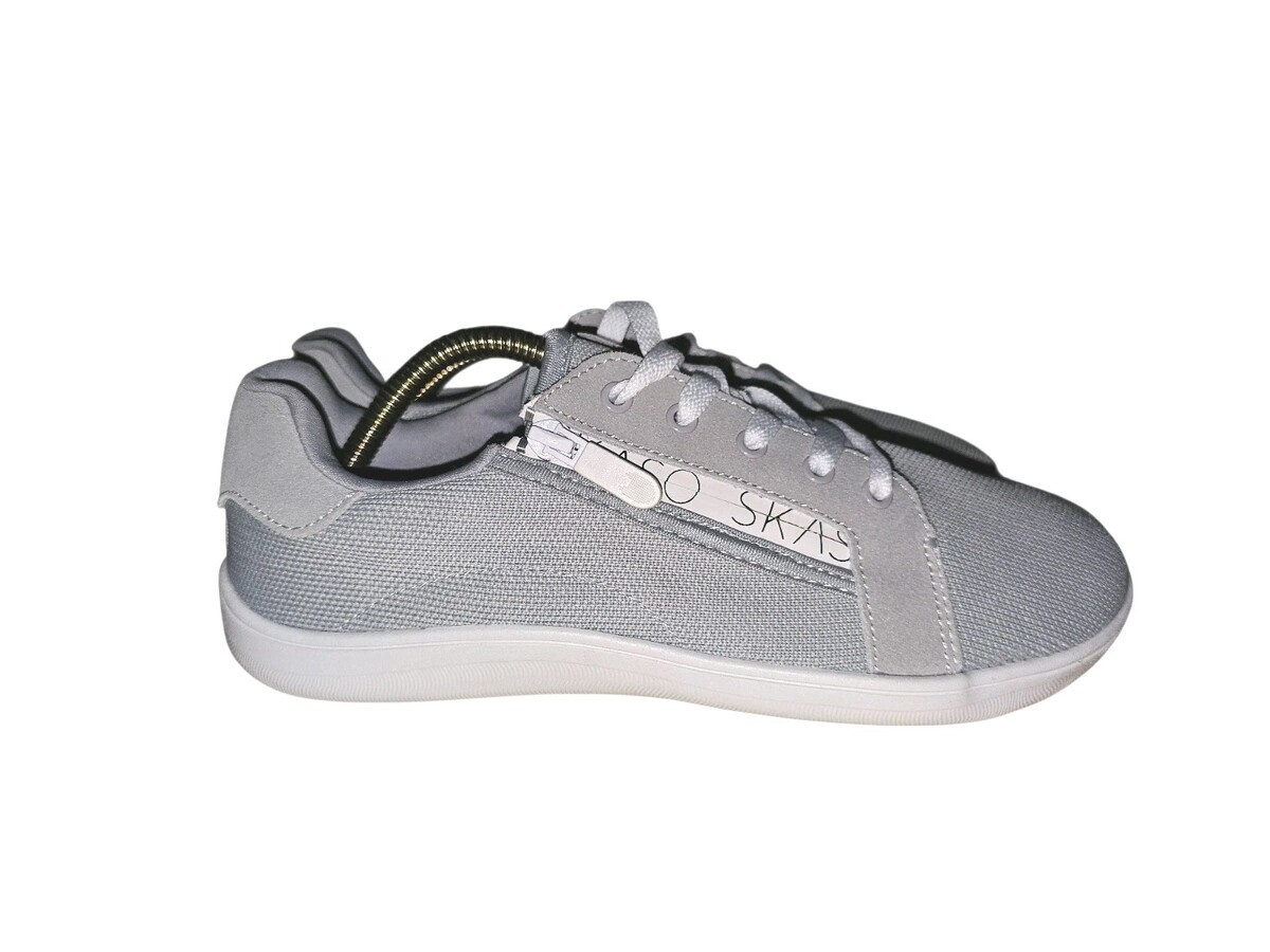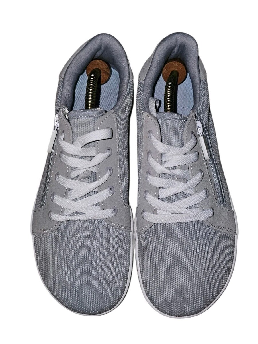 The SKASO Barefoot Walking Shoes are minimalist sneakers designed for women in size 10 US (41 EU). With a round toe shape, flat heel, and lightweight construction, these shoes are perfect for travel, activewear, casual outings, and workwear. The breathable fabric lining and foam insole offer comfort and performance, making them ideal for walking in the summer, fall, and spring seasons. The gray color and solid pattern give these shoes a classic and athleisure look, while the rubber outsole provides traction and durability. Made by the brand Skaso, these shoes feature lace and zipper accents for a stylish and functional design.