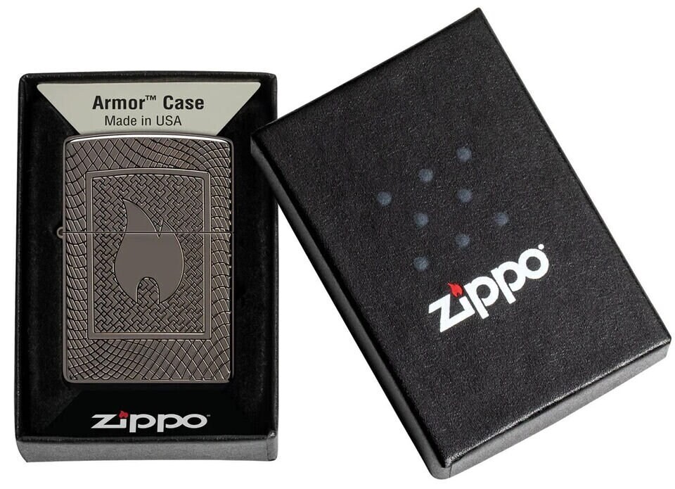 The Flame Deep Carve Armor Lighter by Zippo is a high-quality, collectible lighter made in the United States. Its sleek black finish with deep carved design gives it a unique and stylish look, perfect for both practical use and display. Known for their durability and reliability, Zippo lighters are a popular choice among collectors and enthusiasts alike. This particular model combines functionality with a touch of sophistication, making it a desirable addition to any collection.