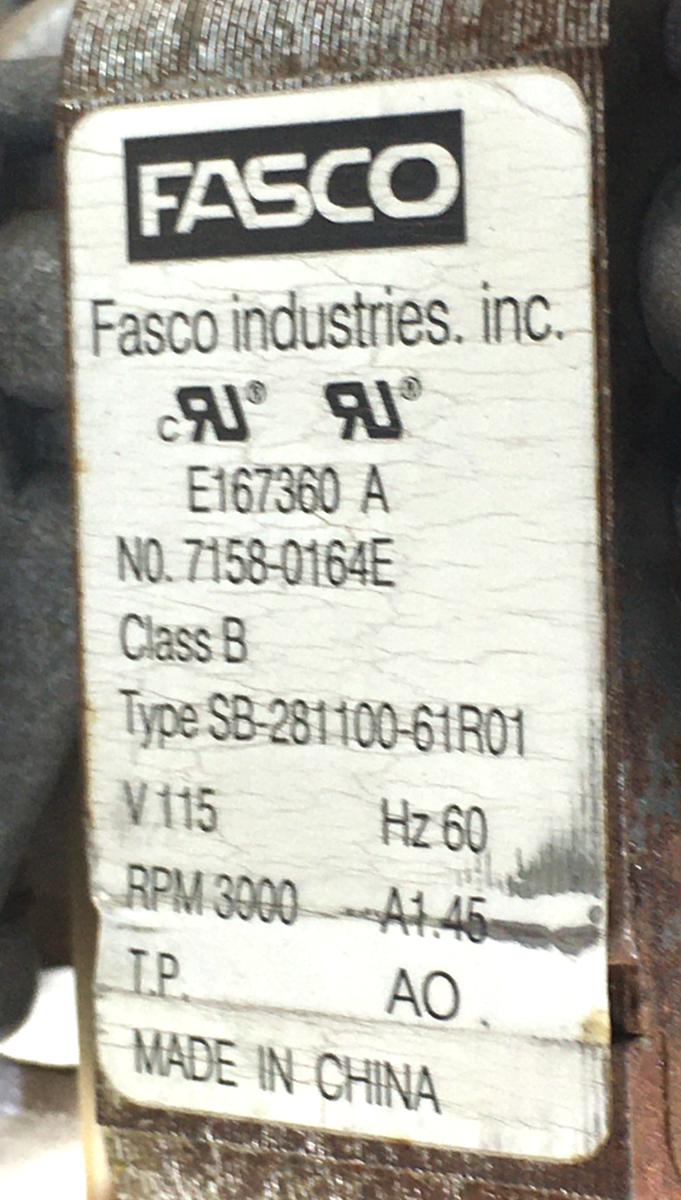 This is FASCO 70580259 Draft Inducer Blower Motor D342077P01 7158-0164E 115V 3000 RPM used part.