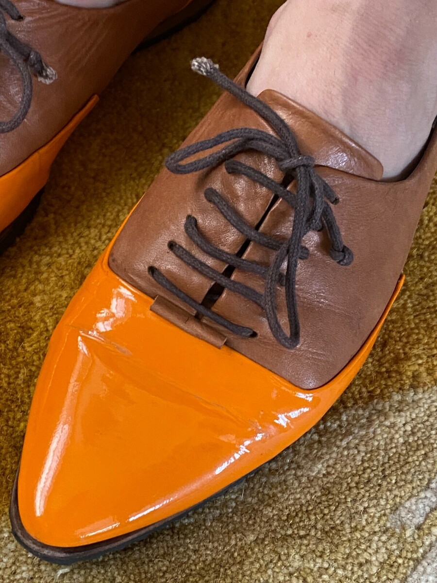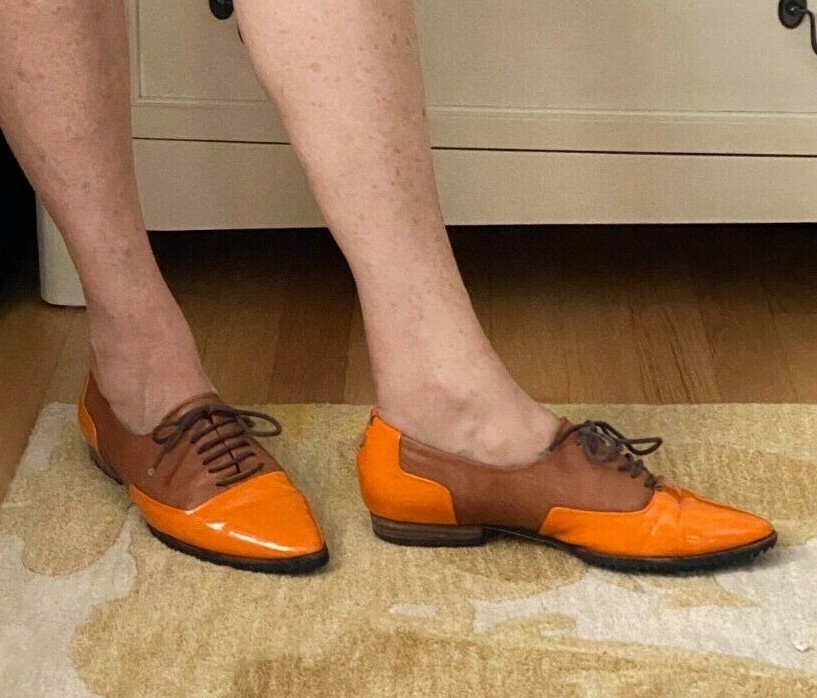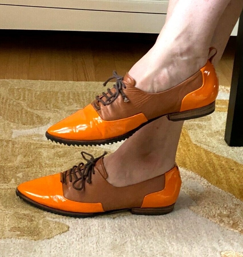 JULIA LUNDSTEN SKIN FINSK Womens 2 Tone Oxford Orange Brown Pointy Shoes 39/9M
