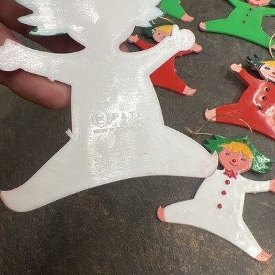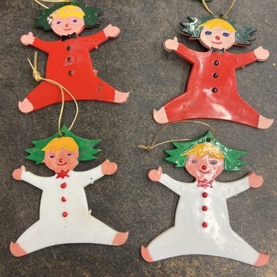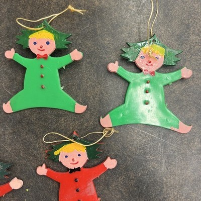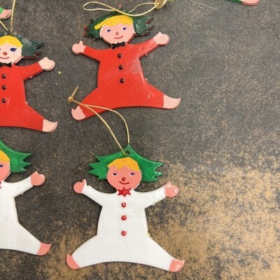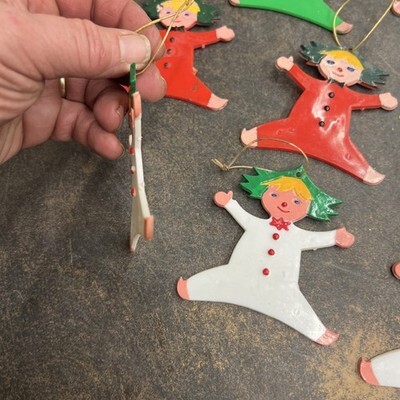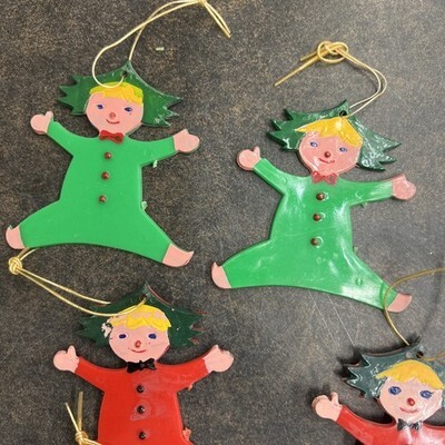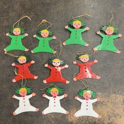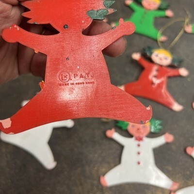 10 Vintage Acrylic Plastic Christmas Tree Ornaments Elf Pixies Hong Kong PAT Lx