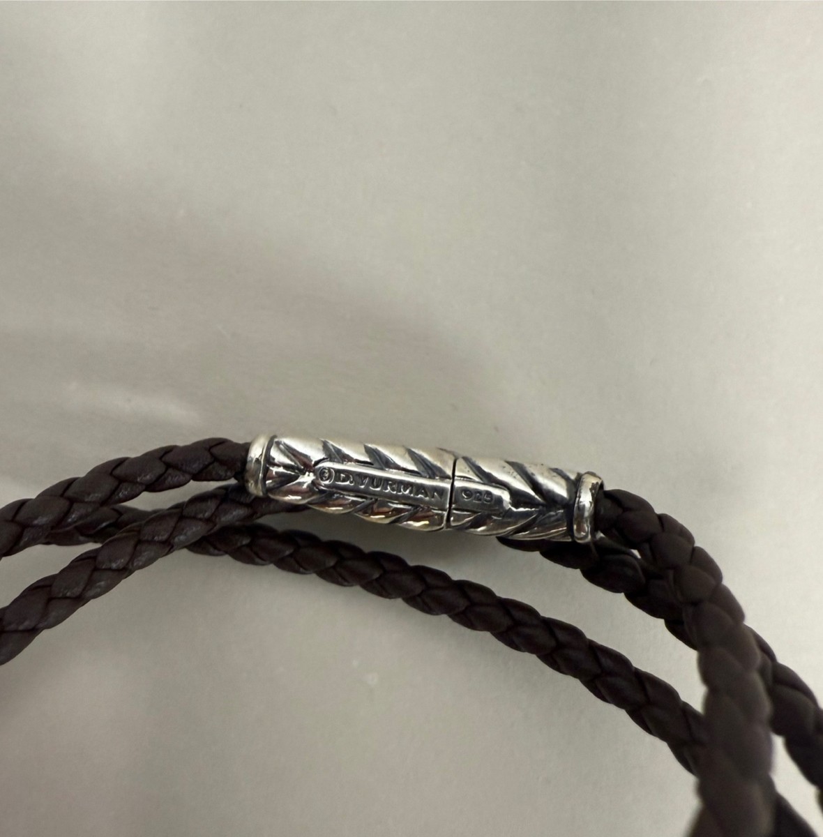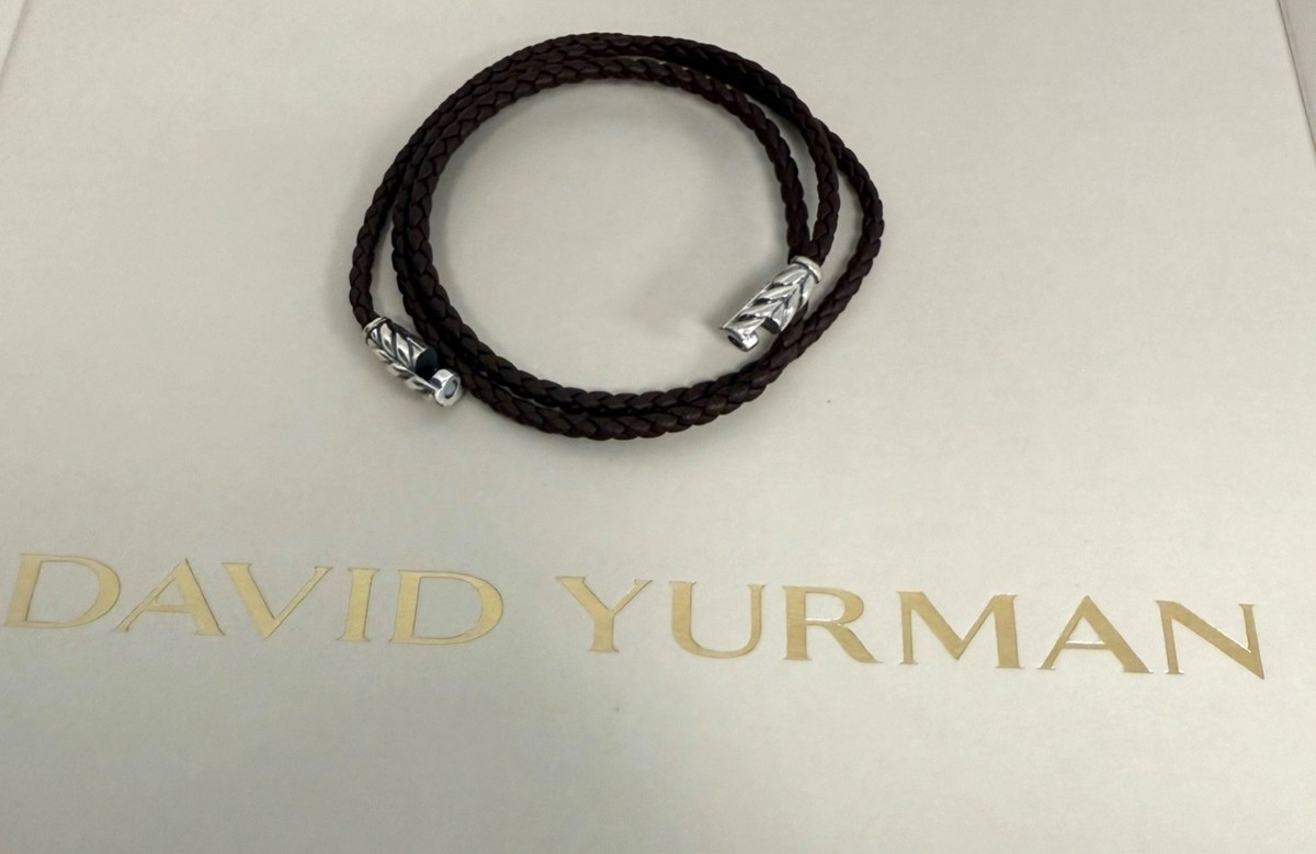 David Yurman 925 Sterling Silver Triple Wrap Dark Brown Leather Bracelet Small