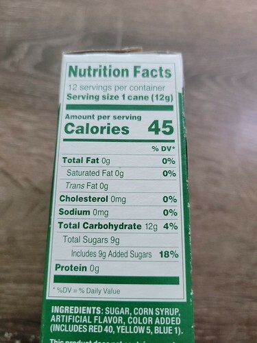 45 Calories Per Cane |