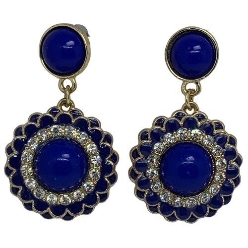 Faux Lapis Crystal Gold Tone Pierced Earrings.