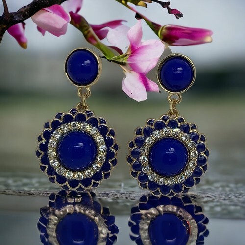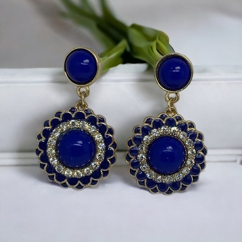 Faux Lapis Crystal Gold Tone Pierced and 50 similar items