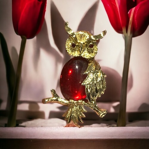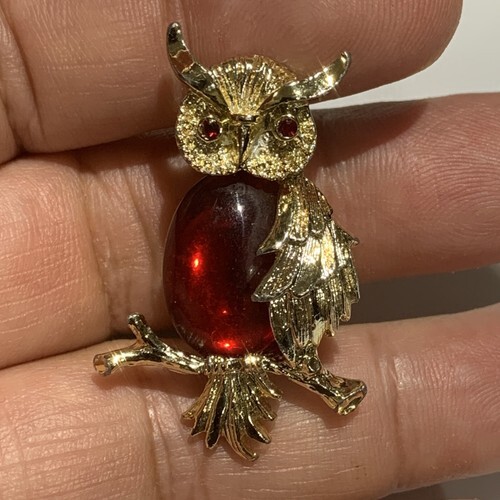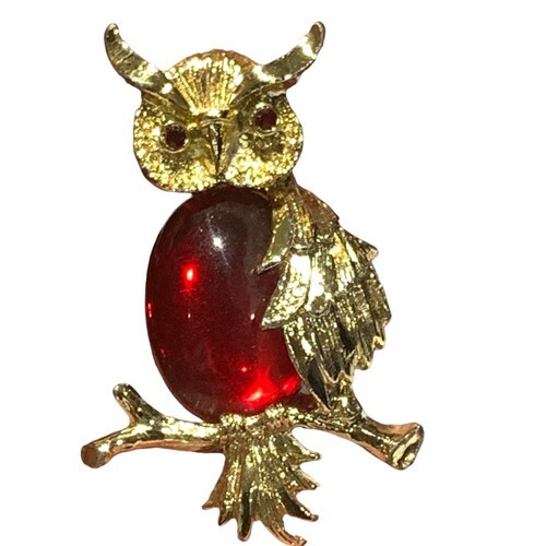 Vintage Gerry's jelly belly owl brooch gold and similar items