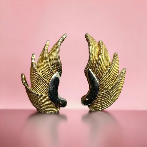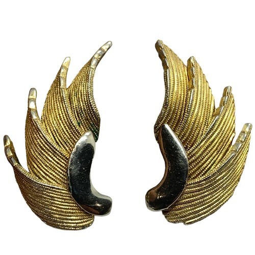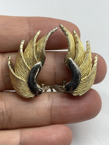 VTG Earrings gold clip bold luxury designer signed HAR.
