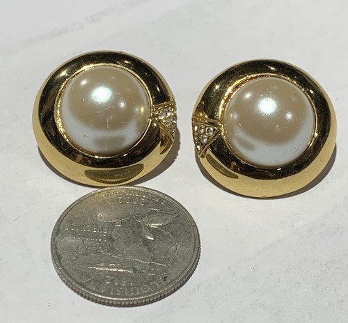 Sarah Coventry Faux Pearl Dome Rhinestone Clip Earrings Elegant Wedding Holiday.
