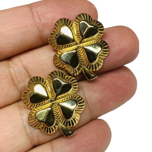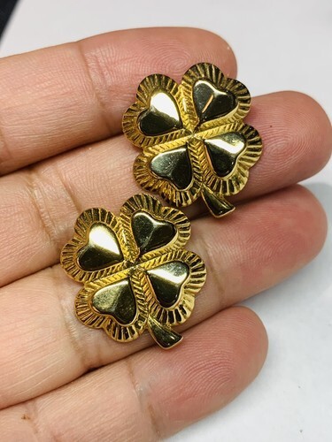 Vintage Avon Gold-Tone Clover And Heart Pierced Earrings