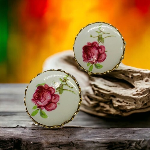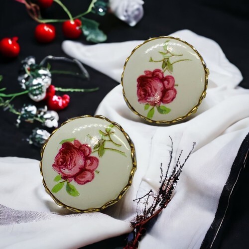 Vintage gold tone ceramic rose clip on and 50 similar items