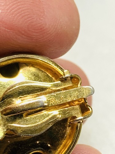 Vintage White Enamel Clip On Earrings Signed Robert