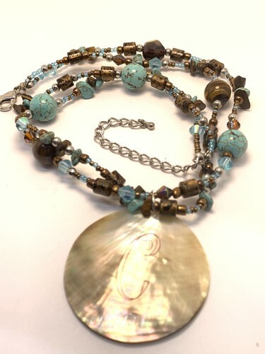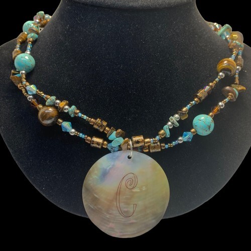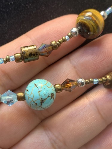 tiger’s eye turquoise mother of pearl necklace 16”-19”