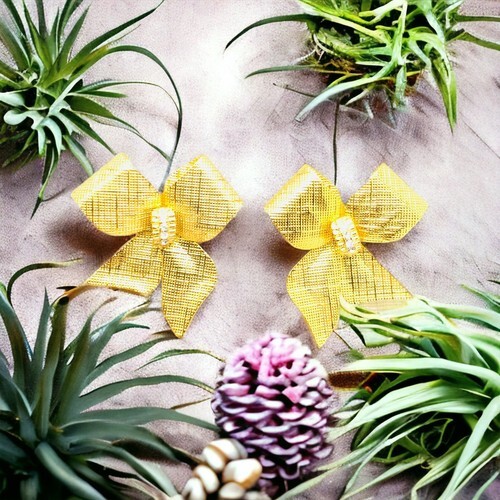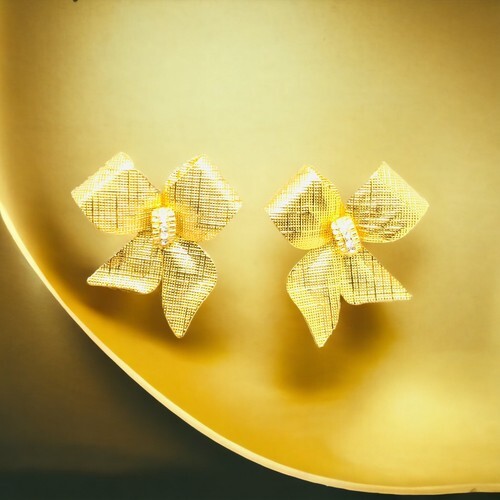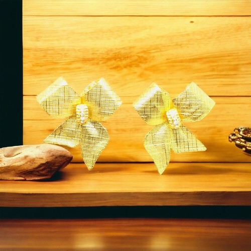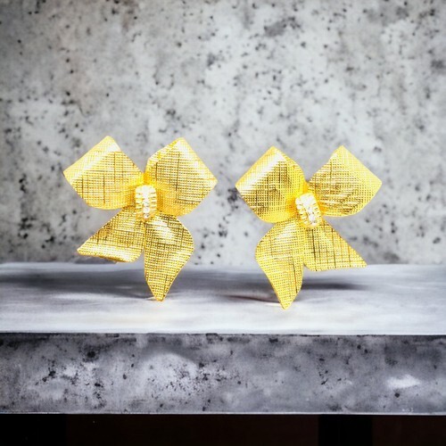 Gold Tone Pierced Texture Gold Tone Bow Tie Earrings.