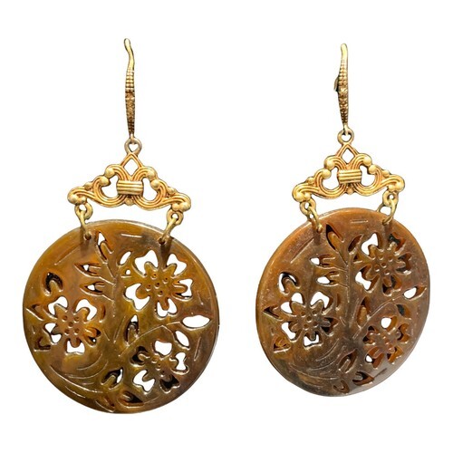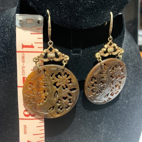 AVON 2007 "Filigree Faux Tortoise Earrings 2.75" Rhinestones accents.