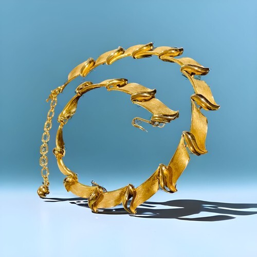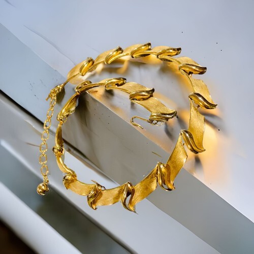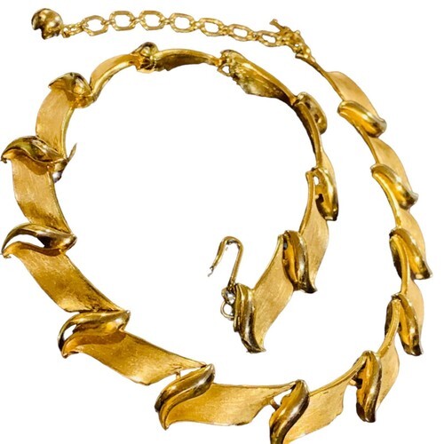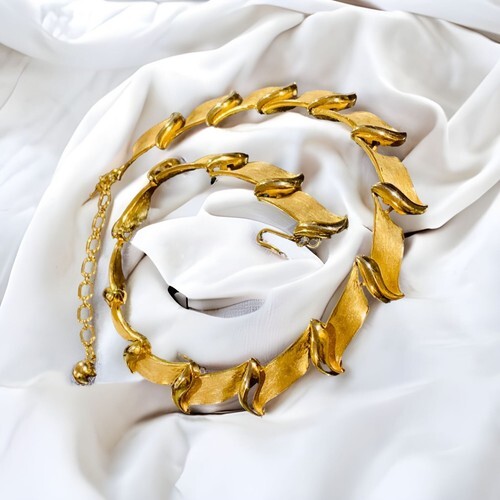 Vintage Signed Trifari Brushed Gold Tone Leaf Choker Necklace 15.5?.