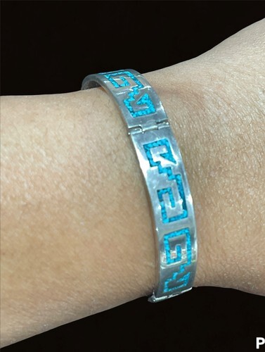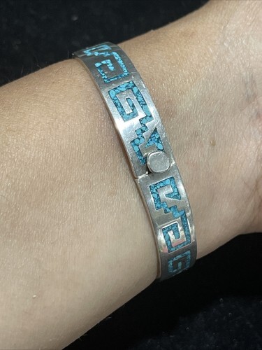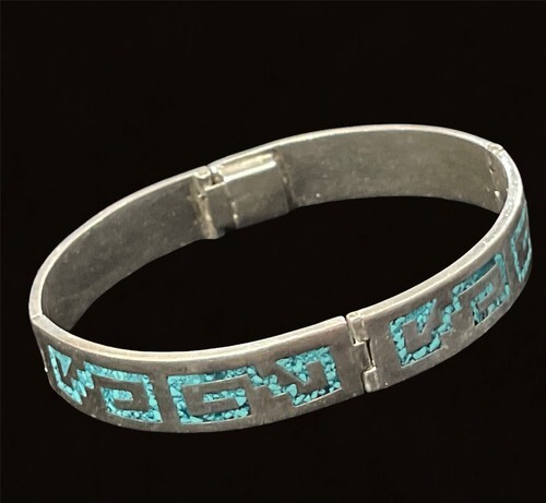 vintage texco Mexico crushed turquoise panels bracelet 7.5? 34.2 gram.