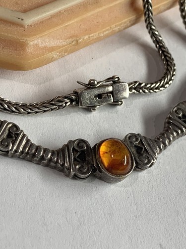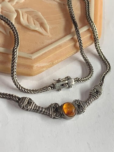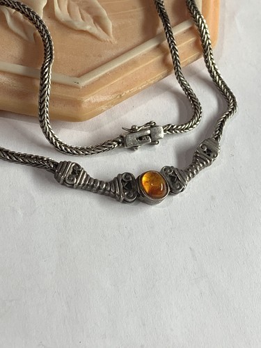 Vintage sterling silver Signed CW Amber necklace 28 gram 18โ