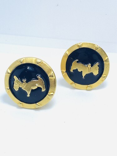 Vintage Doncaster Gold Tone Clip On Earrings Scottish Terrier Black Enamel