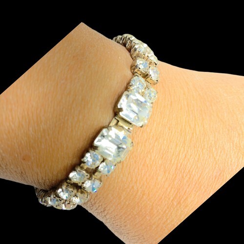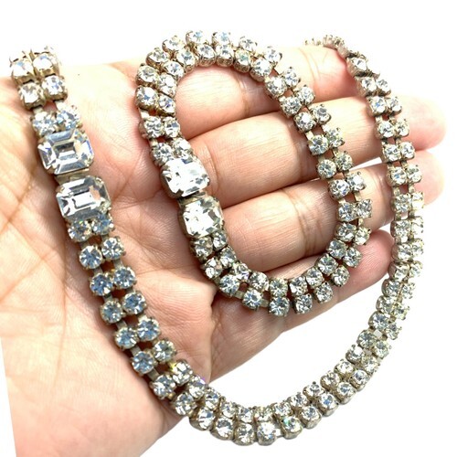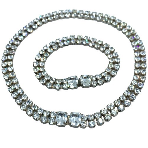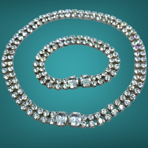 art deco rhinestones necklace 14.5? and bracelet 7.5?".