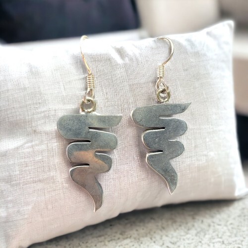 925 Sterling Silver Vintage Mexico Zigzag Dangle Earrings.