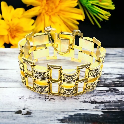 Wide Vintage Damascene Link Bracelet with and 50 similar items