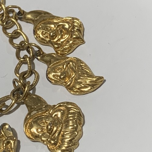 Snow White 7 Dwarfs Gold Tone Collectable Childs Disney Charm Bracelet CUTE!.