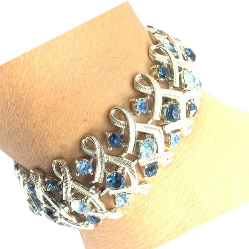 great vintage Coro blue ab rhinestones silver tone bracelet 7?.
