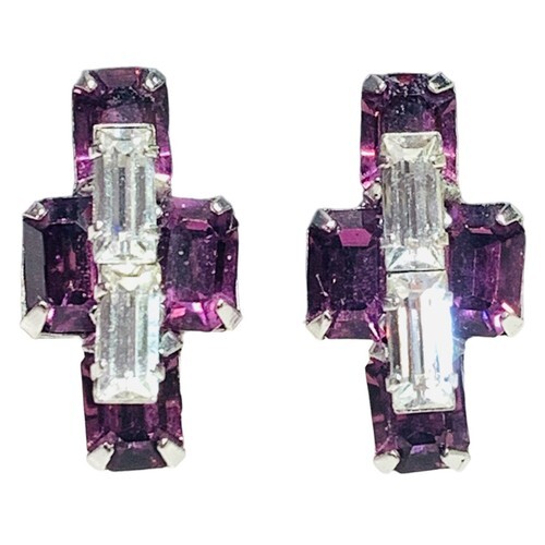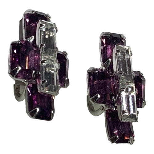 Vintage Sterling Silver Earrings 925 Jay Flex Signed Screw Back Rhinestone