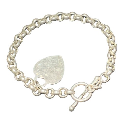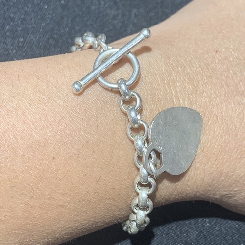 Vintage Sterling Silver Rolo Belcher T Bar Link Toggle Clasp Bracelet Signed OTC