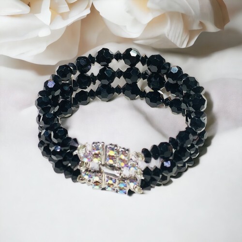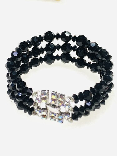 continental Faceted Onyx Beads Rhinestone bracelet 7?.