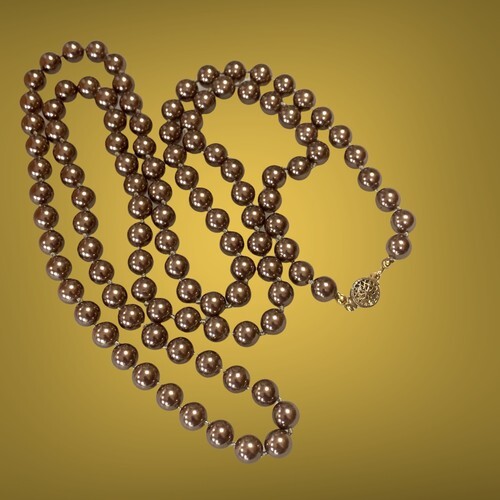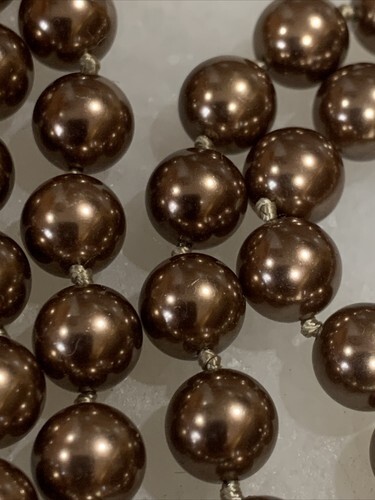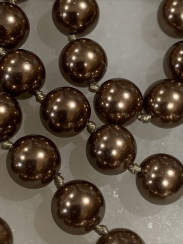 Vintage Rich Chocolate Brown 8mm Glass Pearl Necklace, Hand Knotted 21” 3/22