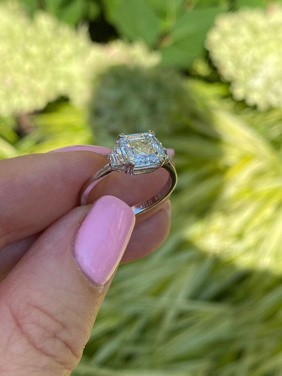 3 Stein Igi 2.10 Karat Kunstdiamanten Grown Asscher Diamantring 14k Gold 2.50