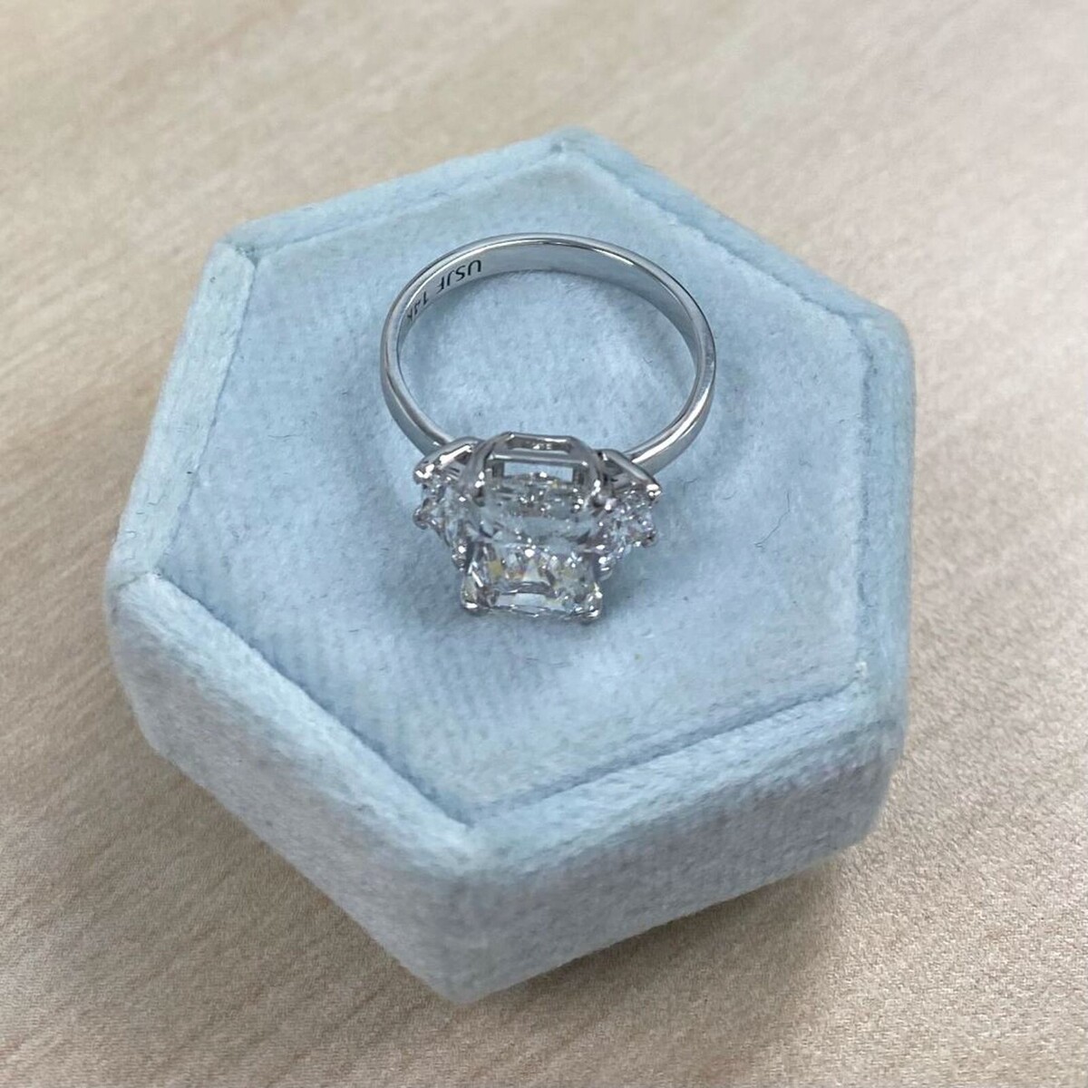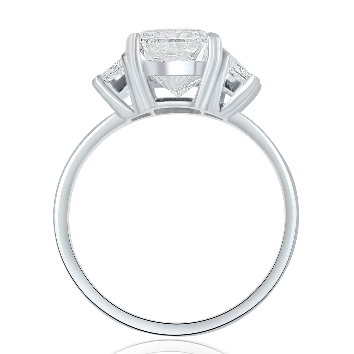 Tres piedras, una piedra central cultivada en laboratorio de 3,00 quilates de talla brillante radiante certificada por IGI con 2 anillos de compromiso de diamantes cultivados en laboratorio de 0,66 quilates de talla brillante trapezoidal es una opcion hermosa y única para una propuesta. El diamante de talla radiante tiene una forma moderna y versatil que ofrece un sparkle brillante, mientras que las piedras laterales trapezoidales añaden un toque de elegancia y sofisticacion. El peso total en quilates es de 3,66 quilates. Engastado en brillante oro blanco de 14k.