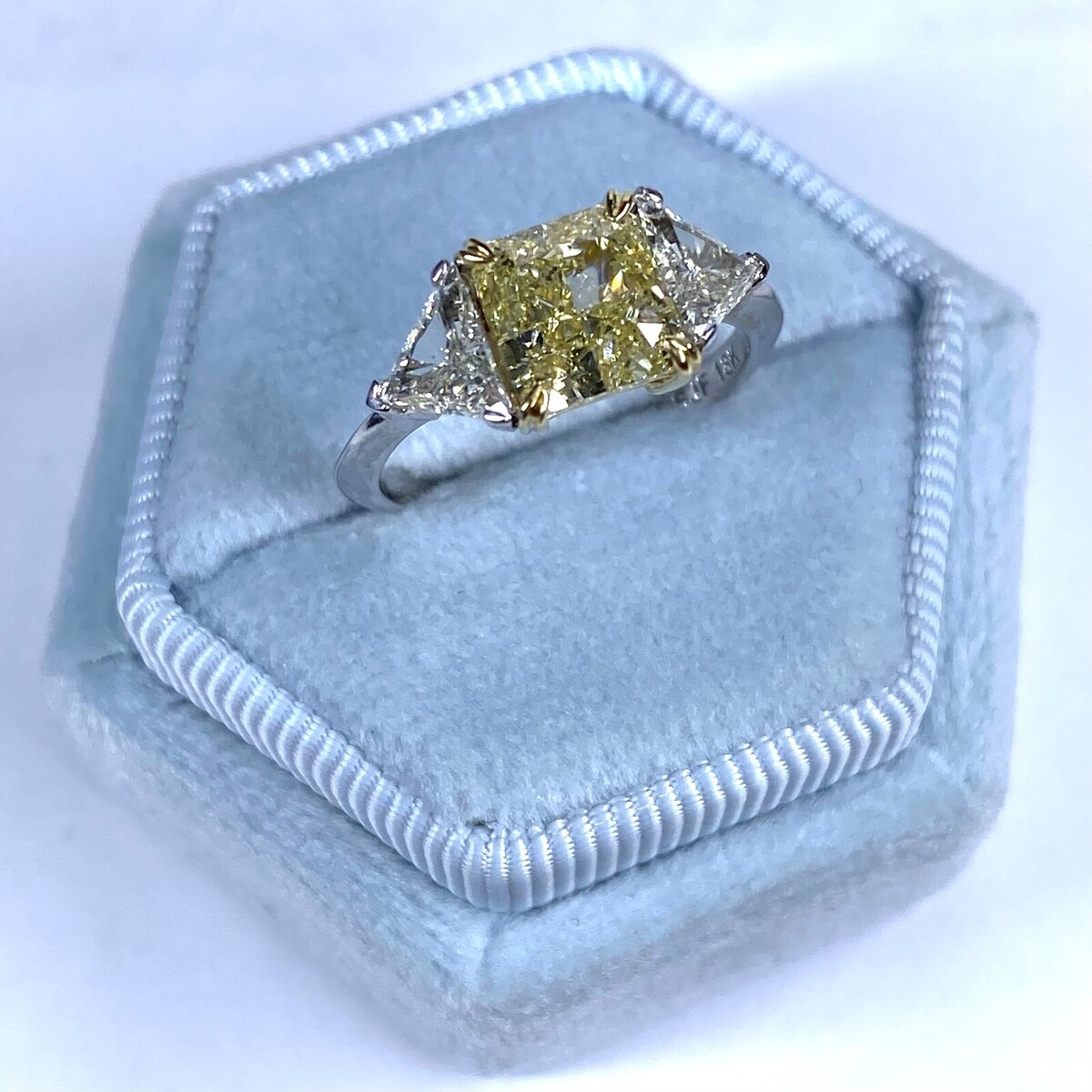 GIA 2.42 CT 3 Pierre Radiant Coupe Jaune Anneau Fiancailles Diamant 18k or Blanc
