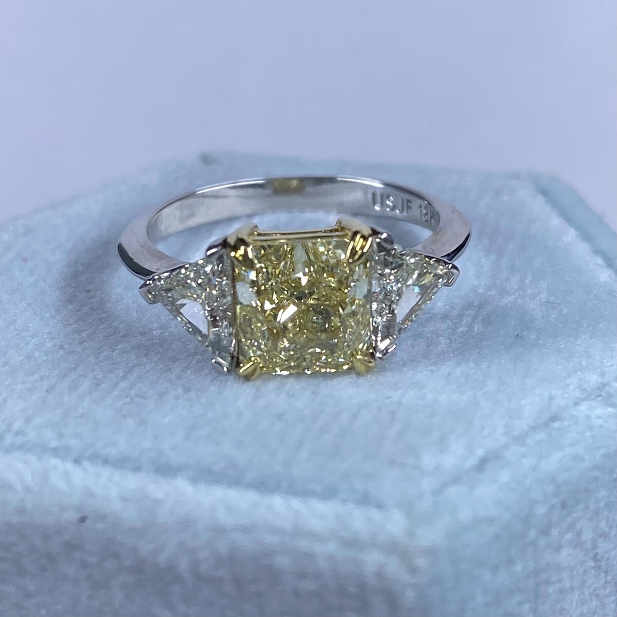 3 Pierre GIA 2.85 Carats Lumiere Jaune Radiant Coupe Anneau Fiancailles Diamant