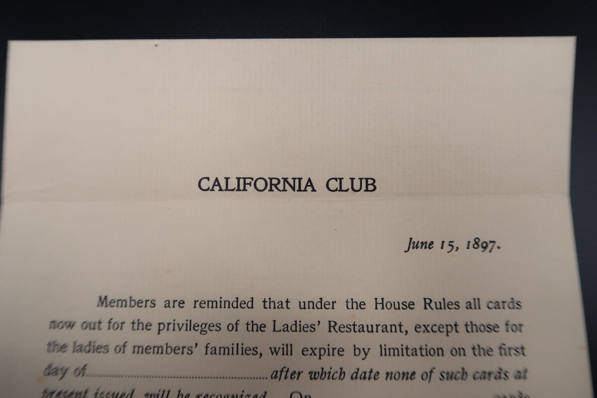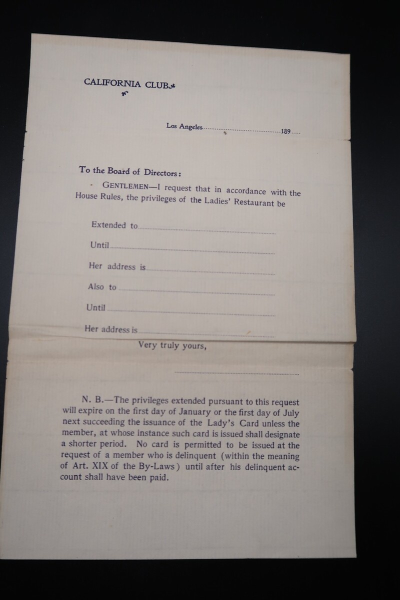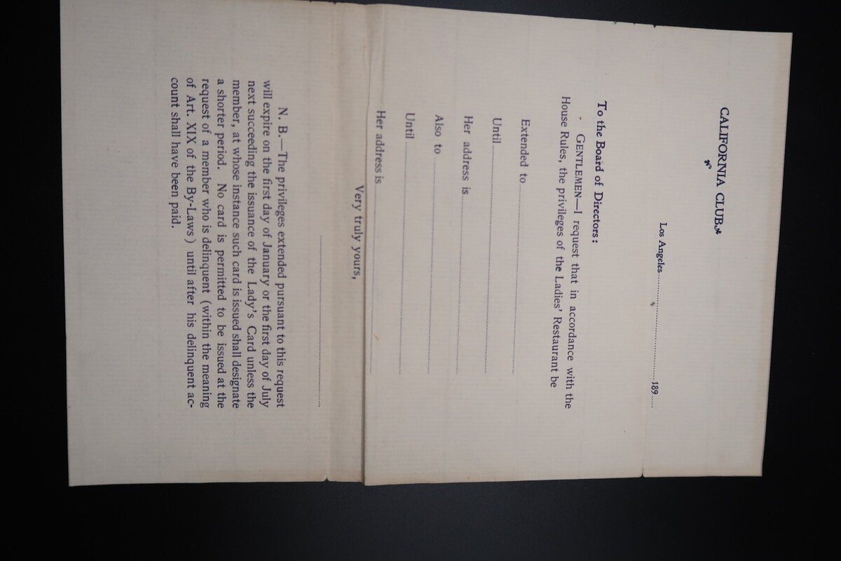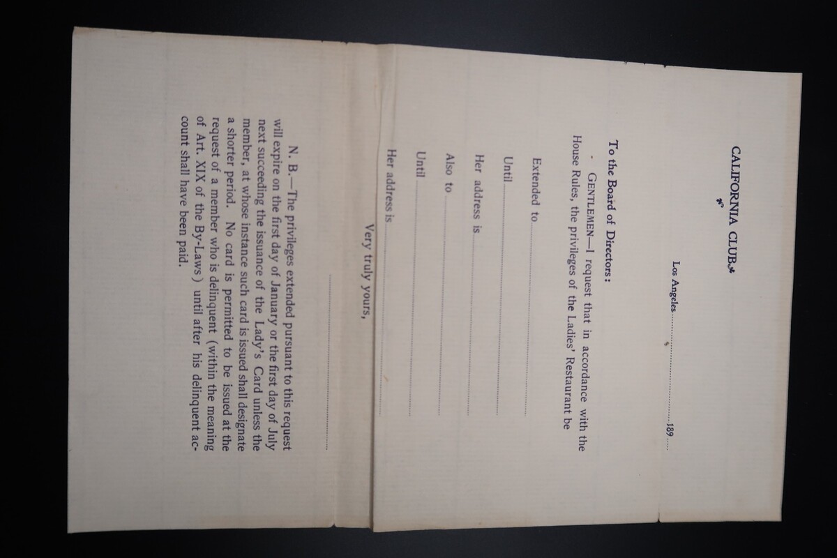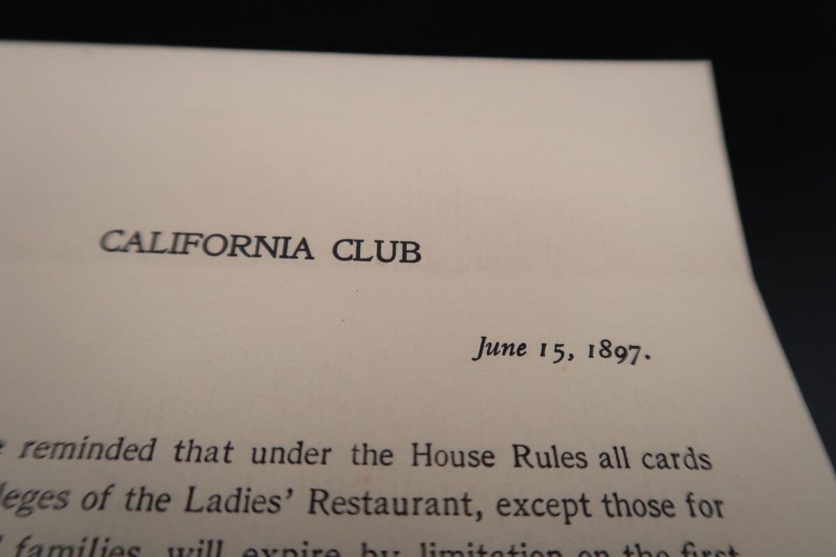Antique California Club Los Angeles 1897 Letter Ladies Restaurant Permission HTF